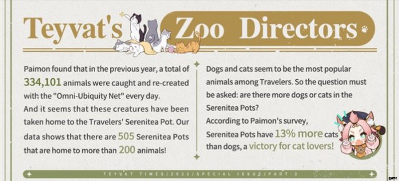 Omni-Ubiquity Net はガジェットとして人気を博していなかったかもしれませんが、一部のプレイヤーはハンターとしてプレイし、テイバットの地をさまよっている野良を捕まえるのが大好きでした。また、げんしんコミュニティの大部分は猫好きでもあるようです。なぜなら、猫は世界から最も多く集められたペットだったからです。外で震えている犬たちに哀悼の意を表します。このニュースの後、犬好きの少数派は立ち上がり、責任を負うことになるでしょう。