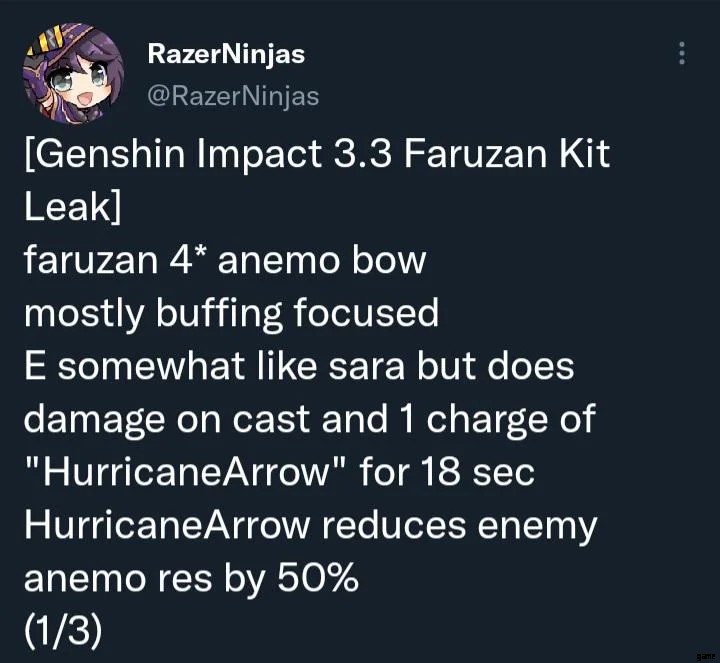 Faruzan:Genshin Impact 3.3 の初期キット リーク