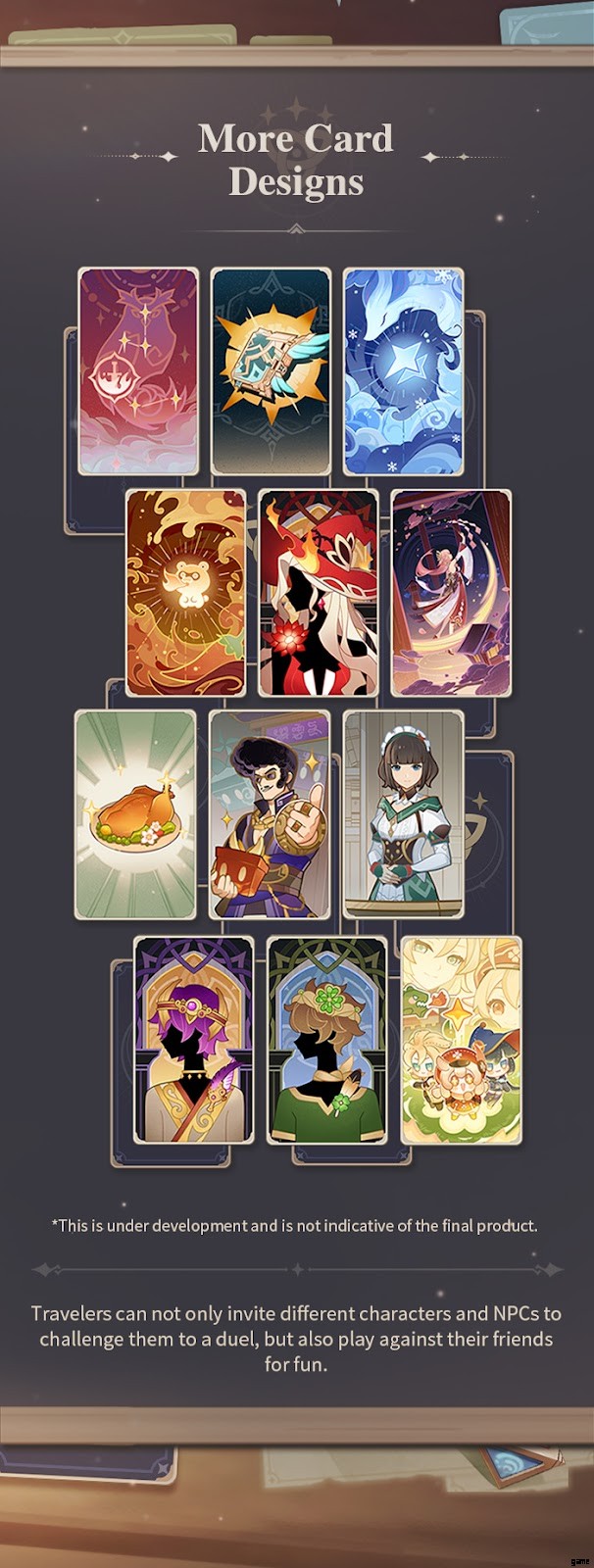 このゲームモードはバージョン 3.3 で追加される可能性が高く、一部の NPC が学者の間でカードゲームについて話していた Sumeru の最初から示唆されていました。また、Cyno が自由時間に TCG をプレイしたり、その他の情報を楽しんでいることも既にわかっています。