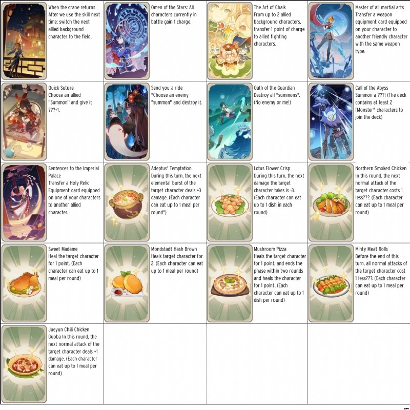 Genshin Impact Version 3.3 Genius Invokation TCG:TCG カードの効果が流出