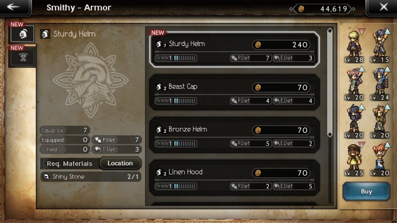 オクトパス トラベラー ゲームのデイリー ミッションの一環として材料を販売するために、少なくとも 1 日に 1 回は鍛冶屋を訪れるようプレーヤーにインセンティブを与えます 、これは Inquire システムの外でより良いギアのロックを解除するための鍵です。武器と防具の両方が購入ごとに材料を消費するため、プレイヤーは訪問ごとに交換される材料に基づいて購入できるものに制限されます.
