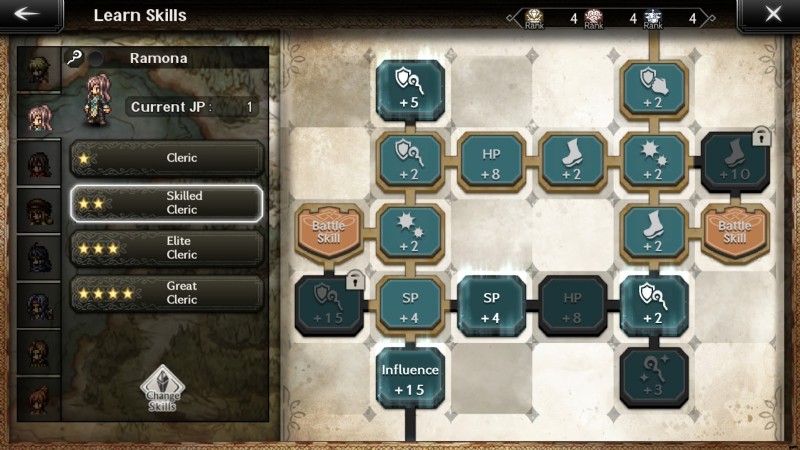 レベル自体に関しては、トラベラーが取得するレベルごとに、ジョブポイントまたはJPが与えられます。これらはアビリティ ボードで使用して、トラベラーのステータスを上げたり、関連するエリアでキャラクターの影響力を上げたり、新しいパッシブ スキルやバトル スキルをアンロックしたりできます。プレイヤーはパッシブとバトル スキルを優先する必要があります 最初に、次に旅行者の影響力を増加させるノード。