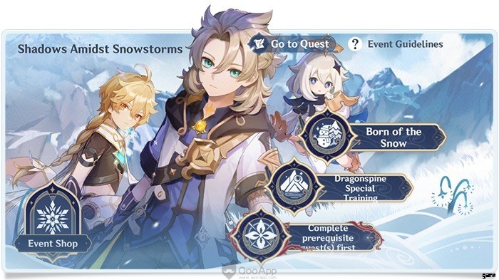 Act I が終了すると、メイン ページのロックが解除されます。このページは、 Born of the Snow、Dragonspine Special Training、Rise of the Fell Flower のカテゴリに分かれています。 .次の段落では、これらのアクティビティのそれぞれに何が必要かを説明し、それらをクリアするためのヒントとコツを紹介します。