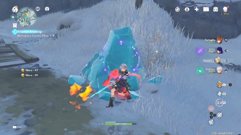 イベントエリアの半径内には、多数の雪柱が点在しています。 パイロ攻撃で溶かす 立ちはだかる敵を倒します。氷の柱を溶かすと、雪だるまを作るためのさまざまなコンポーネントを獲得できます。この部分については後で説明します。