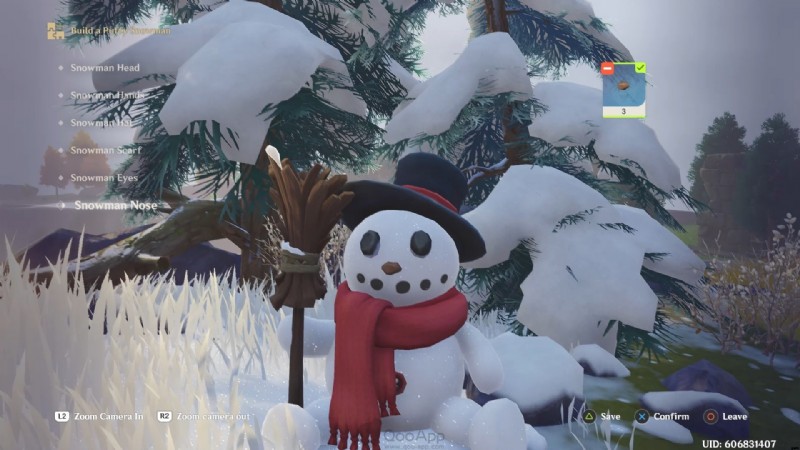 3つのチャレンジで手に入れた部品を使って、かわいい雪だるまを作ることができます。空白の雪だるまは、ドラゴンスパイン キャンプの入り口のすぐ近くにあります。