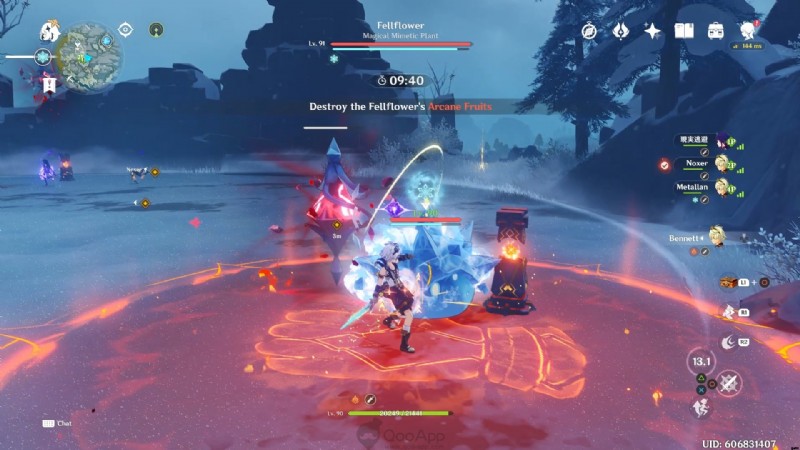 戦闘中、フェルフラワーはアルケイン フルーツとアルケイン エッセンスを放出します。 これらのフルーツに十分なダメージを与えて、花の盾が壊れる必要があります .アーケイン エッセンスは特定の間隔で放出されます。それらを収集しないと、フェルフラワーのシールドが再生され、進行状況が元に戻ります。