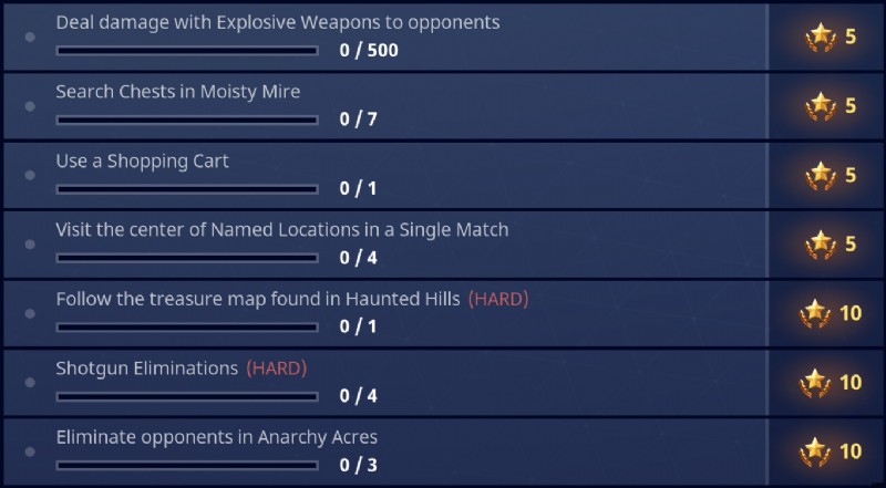 シーズン 4 のフォートナイト ウィーク 9 チャレンジ ガイドでは、爆発武器で対戦相手にダメージを与えたり、モイスティ マイアでチェストを検索したり、ショッピング カートを使用したり、指定された場所の真ん中に移動したり、ホーンテッド ヒルから宝物を探したり、人々を排除したりするという課題について説明します。ショットガンで、アナーキー エーカーズで!