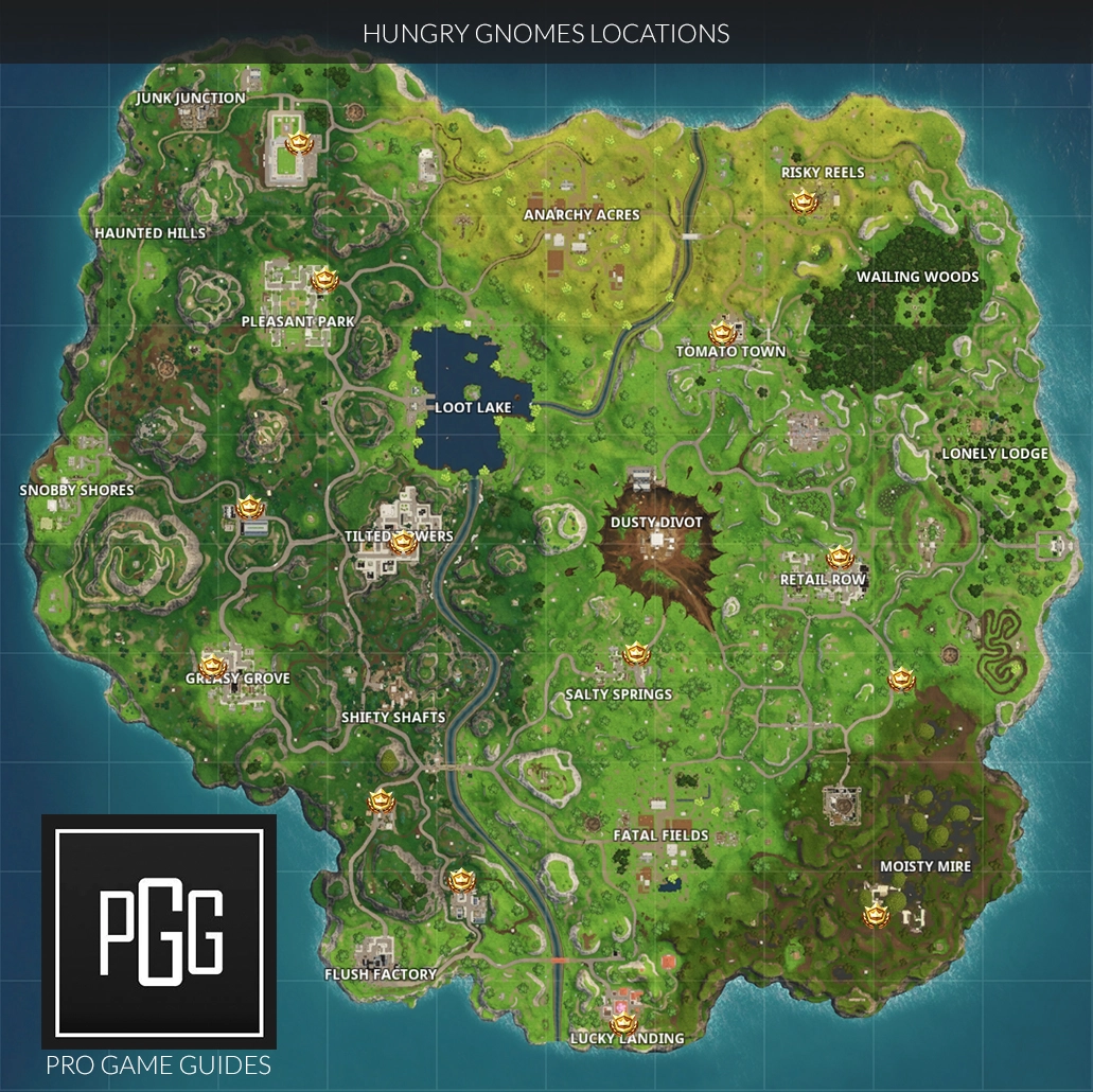Fortnite のシーズン 4 が終わりに近づいています!第 8 週では、対戦相手をヘッドショットし、Salty Springs でチェストをつかみ、1 回のマッチで 7 つのチェストを検索し、7 つのハングリー ノームを見つけ、クマ、クレーター、冷蔵庫の積荷の間を探し、抑圧された武器で敵を排除し、Pleasant でプレイヤーを排除します。パーク!