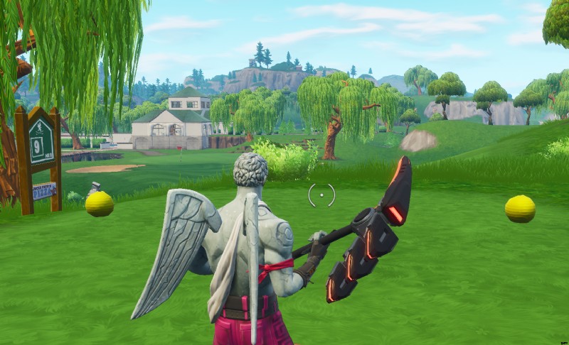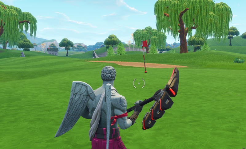 ゴルフボールのおもちゃの 1 つをお気に入りのエモート ホイールに装備してください。次に、Lazy Links に向かいます。このエリアにはたくさんのゴルフ ティーがあります。その 1 つに立ち、エモートを使ってボールをグリーンに落としてください!