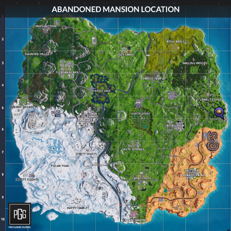 この課題をどのように完了する必要があるかは正確には不明です。あなたは敵に対して踊らなければなりませんか?それとも、デュオ パートナーやスクワッド メンバーと対戦する必要がありますか?詳細は、チャレンジがリリースされたときにお知らせします。ただし、可能性の高い場所はわかっています。マップの一番東側に邸宅があります。これはかつてスーパーヒーローの場所でしたが、現在は放棄されており、ダンスフロアとスコアボードがあります.