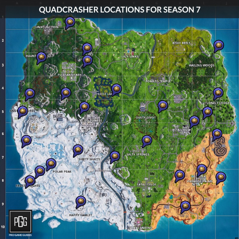 シーズン 7 では、次のような場所でかなりのクワッドクラッシャーを見つけることができます: