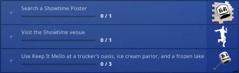 Fortnite Showtime チャレンジ リストとガイドには、DJ Marshmello が出演するこの今後のイベントに関するすべての情報が掲載されています!リリース日、チャレンジ、獲得できる装飾報酬に関する情報を入手しました!