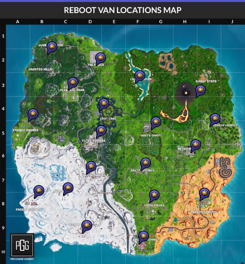 リブート バンはフォートナイトの新機能で、排除されたチームメイトを復活させることができます。リブート カードを手に入れて、バンの 1 つに向かい、このチャレンジのクレジットを獲得してください。バンのすべての場所は以下にあります。