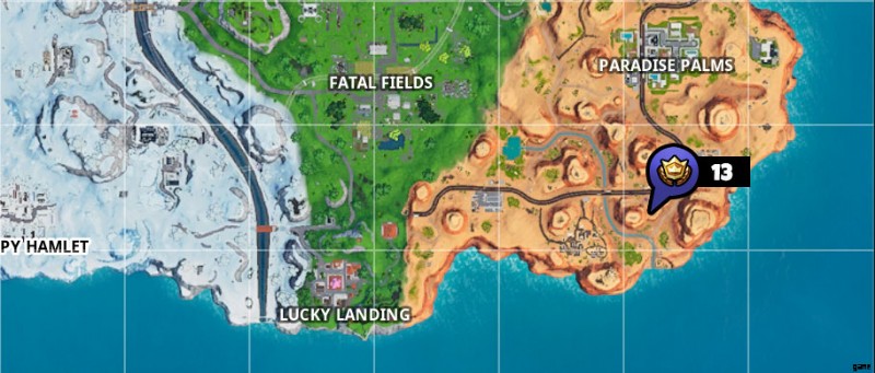 Fortbyte #13 の正確な場所を見つけるには、Paradise Palms の南に向かいます。