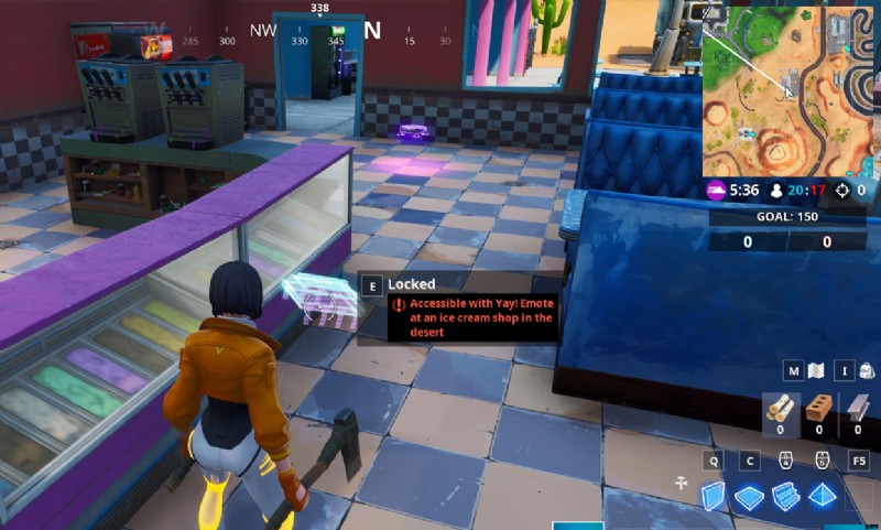 説明にあるように、砂漠のアイスクリームショップに向かう必要があります。ただし、その前に、Yay! を装備することをお勧めします。ティア 14 で無料で獲得したエモート。まだ持っていませんか?さて、この Fortbyte を入手する前に、待って入手する必要があります!