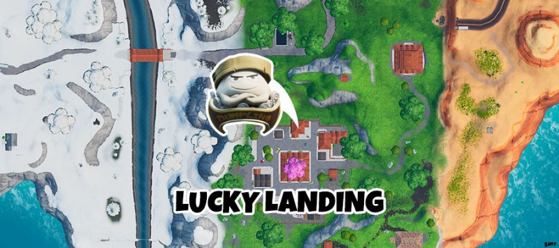 巨大な餃子の頭は、最北端の建物の最上階にあるラッキー ランディングにあります。他の 2 つはゲームにスキンが追加されていますが、バオ ブラザーズがアイテム ショップに登場するのを待っています!