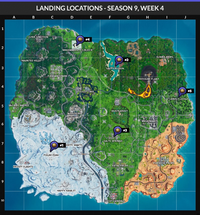 フォートナイト シーズン 9 第 4 週のチャレンジ リスト、チート シート、場所と解決策