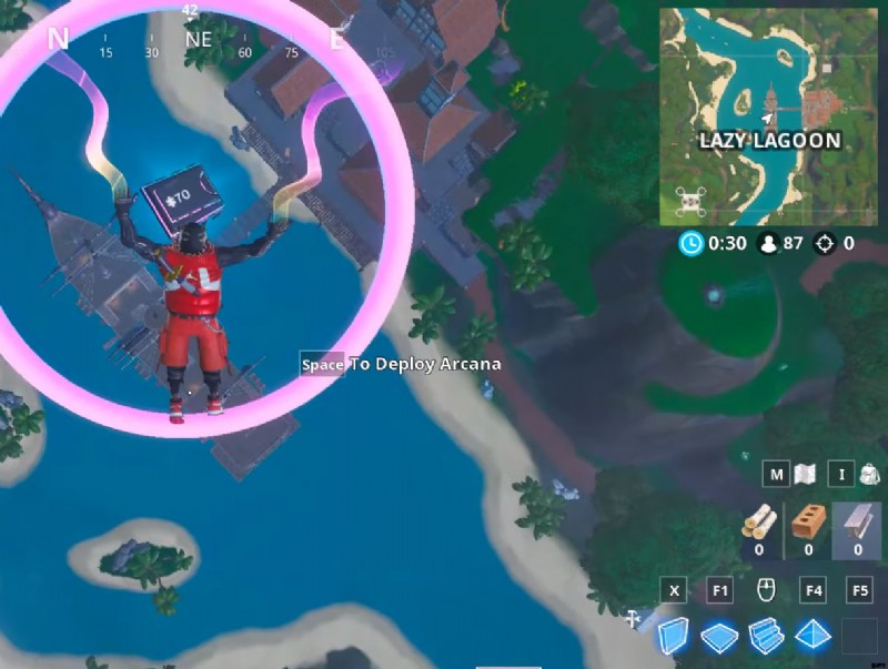 これは、Vibrant Contrails を装備してレイジー ラグーンの上のリングをスカイダイビングすることでアクセスできるフォートバイト 70 の場所を見つける方法のクイック ガイドです !これらの Fortbytes についていくことで、シーズン 9 バトル パスでスタイルを取得し、ユートピア スキンのロック解除に近づくことができます。