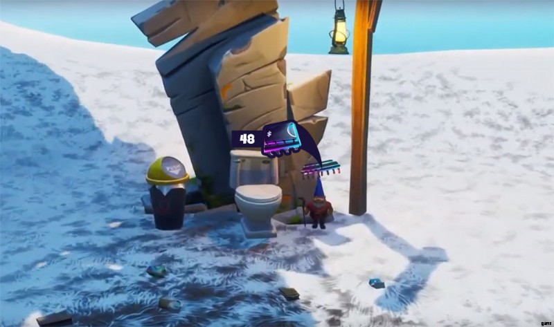 山の南側には、岩、ゴミ箱、トイレ、探しているノームがあります。つるはしを使ってノームを粉砕すると、フォートバイトを集めることができるはずです!