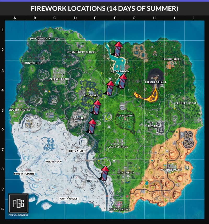フォートナイトの花火の場所ガイド このチャレンジを完了するために必要なすべてのスポットをカバーしています!このガイドは、川岸にある打ち上げ花火を完了するのに役立ちます これは 14 Days of Summer Fortnite イベントの一部です!