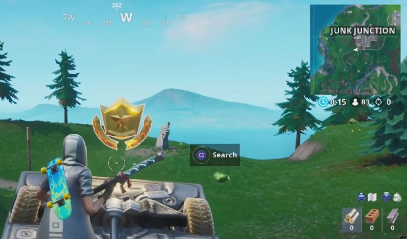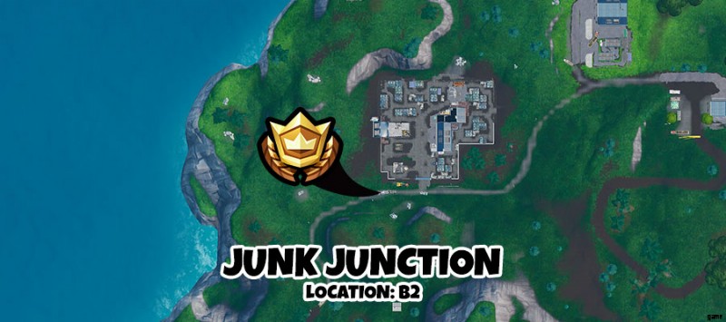 道路のジャンク ジャンクションのすぐ南には、さまざまな車両が積み重なったトラックがあります。ここにはチェスト スポーンがあり、その週の隠されたバトル スターも見つかります!