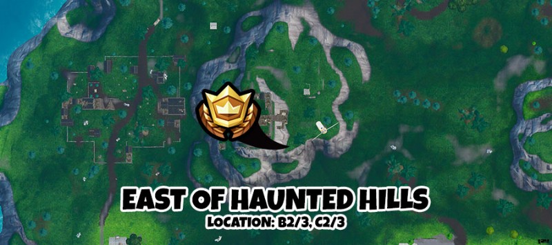 すべてのチャレンジを完了すると、次の紫色のロード画面が表示され、新しいスキンのように見えます!スリップストリームに位置し、いくつかの座標が表示されます:B2、B3、C2、C3。マップ上のその正確な場所に向かうと、その週のバトル スターが見つかります!