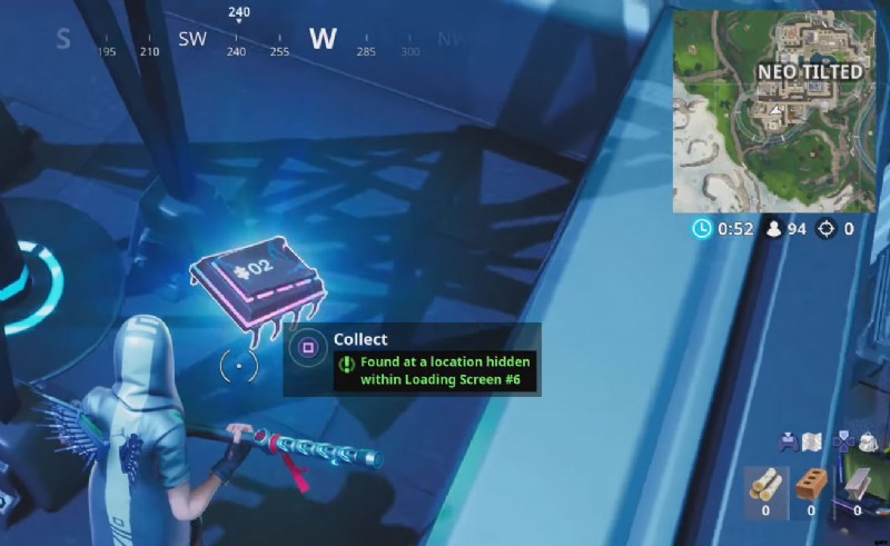 手がかりは、6 週間のチャレンジを完了することで獲得できるロード画面の説明にあります。 「最高のスナイパーだけが、ネオ・ティルテッドの屋上からホロクロック・タワーのランプを取り出すことができる」 Fortbyte を取得するためにチャレンジを完了する必要はありません。