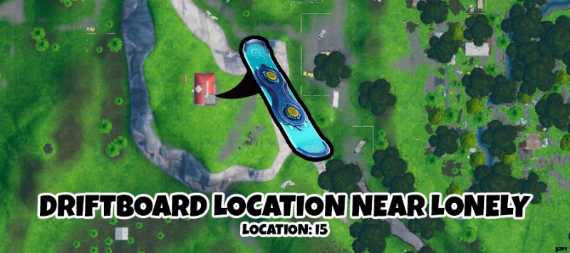 Driftboard を持ってトラックで Lazy Lagoon に向かいます。ドリフトボードがない場合は、ジップラインを北から東に移動できます。もう一度ジップラインを北に進むと、別の前哨基地に到着し、ドリフトボードを獲得できる可能性がさらに高くなります。運が悪ければ、それは残念なことです... ジップラインを北にたどり、西にあるレイジー ラグーンに行くことができます。 Sunny Steps から西に行くと、Outposts の近くにドリフトボードのスポーン場所がいくつかあります。