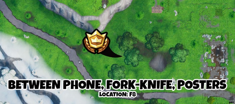 フォーク ナイフは明らかに Fatal Fields の北西にあり、電話は Fatal の西にある Snow バイオームの山の上にあり、ポスターのある家は Fatal の北西にあります。そのため、その真ん中に木のある不毛地帯があります。