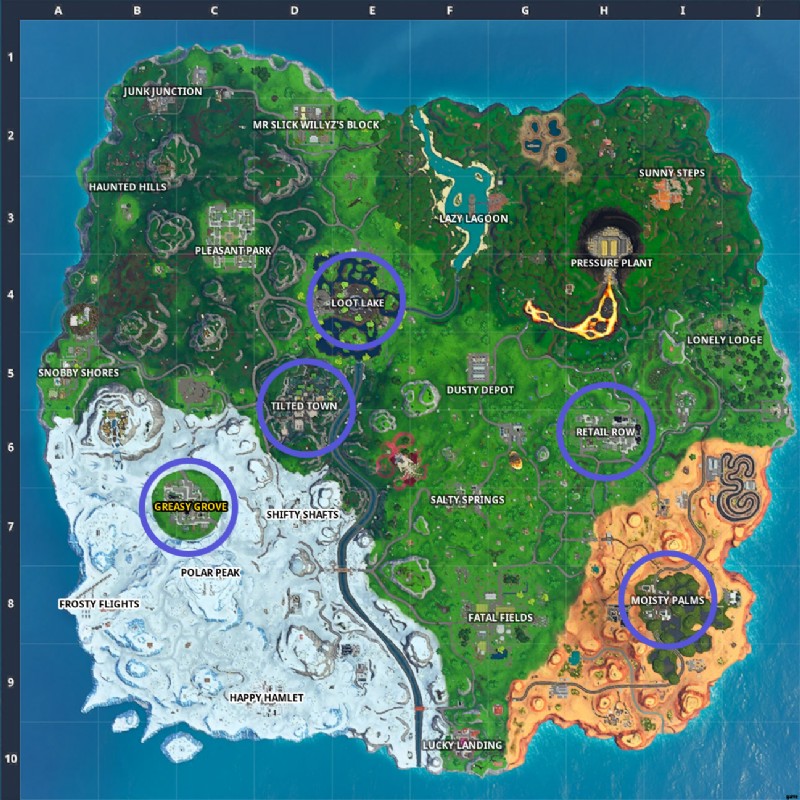 リフト ゾーンはマップ全体にかなり散らばっていますが、これを行う最も簡単な方法は、ルート レイクに滑り込み、その中央にある大きなリフトにぶつかることです。次に、Tilted Town まで滑空して、クレジットを獲得します。その後、Greasy Grove に向かって滑空し続けると、そこで走り、必要な最後のリフト ゾーンのクレジットを取得できるはずです。