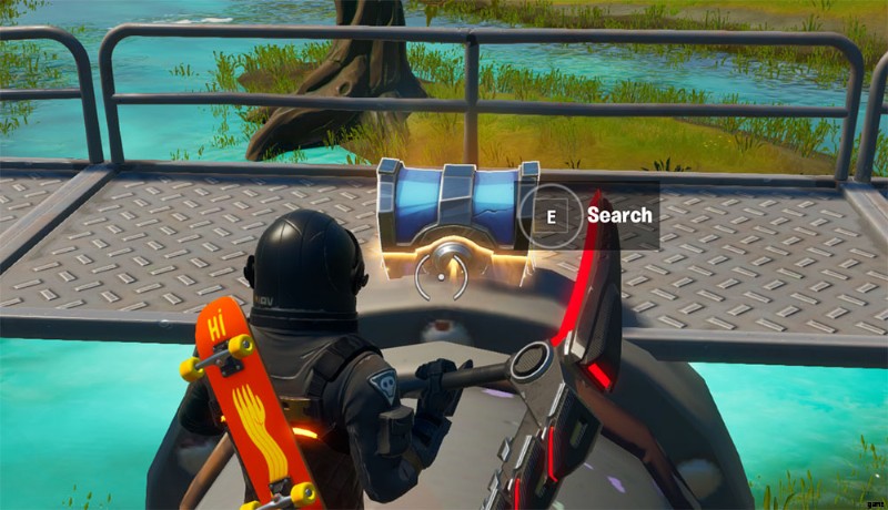 マップ上の Slurpy Swamp エリアを見ると、川の Slurp のように見える明るい青色のハイライトに気付くでしょう。さて、これは植物からのスラープの流出です。ちょっと気のめいるようですが、ゲーム内では、ヒーリングとシールドのために歩き回ることができるので、良いことです!青い液体の中に立つと、体力/シールドが徐々に回復するので、近くにいる場合は気軽に泳いでください。