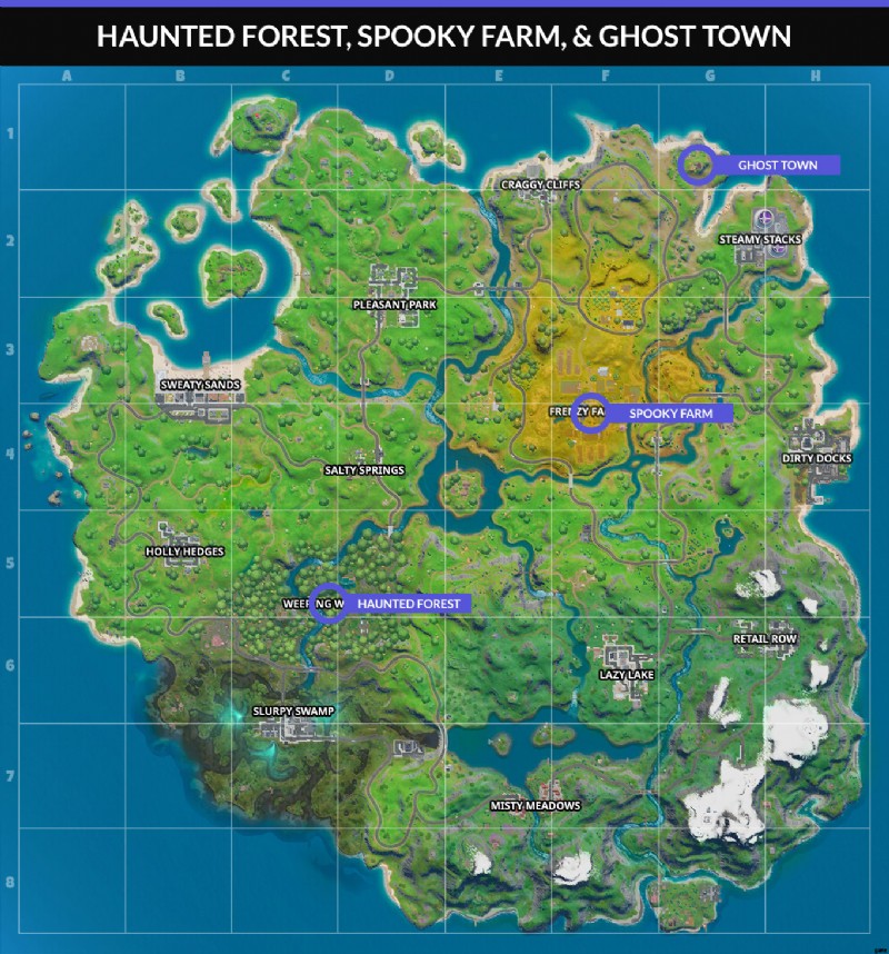 フォートナイト ゴースト タウンのロケーション – ホーンテッド フォレスト &スプーキー ファーム!