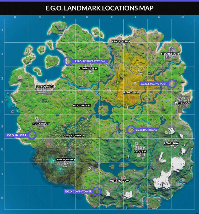 上記のマップを使用して、5 つの E.G.O. をすべて見つけます。前哨地。それらはかなり分散しているので、複数のマッチでこれを行うのが最善です.