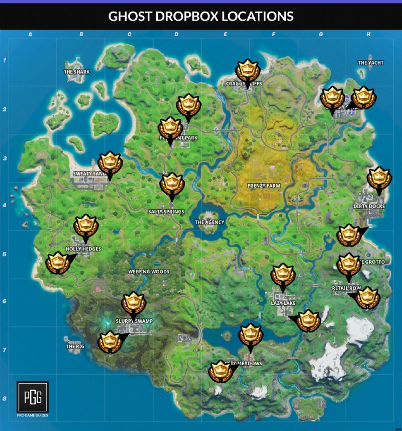 ボックスが実際に見つからないのは、新しい場所 (サメ、ヨット、グロット、リグ、エージェンシー) だけです。フレンジー ファームとウィーピング ウッズにもありません!