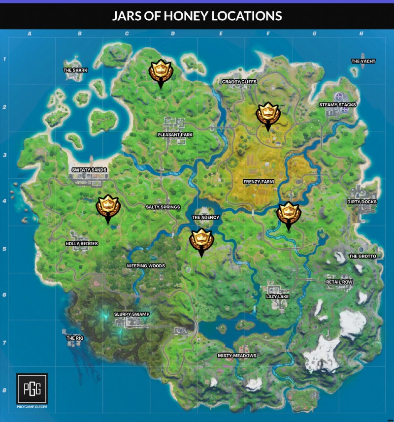 フォートナイト テッド オフェンシブ チャレンジ – すべてのハニー ジャーの場所