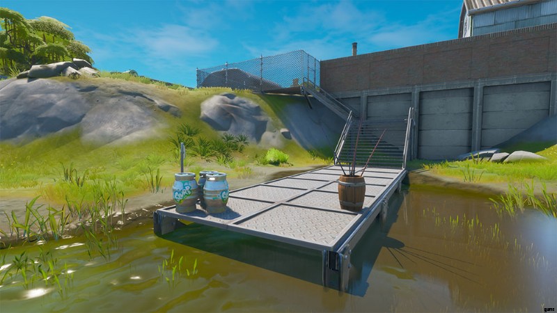 Slurpy Swamp の西側に別の場所があります。金属製の床の上にあり、使用できる釣り竿が入ったバレルがあります。 Team Rumble は、これを完了するのに最も簡単な場所です。