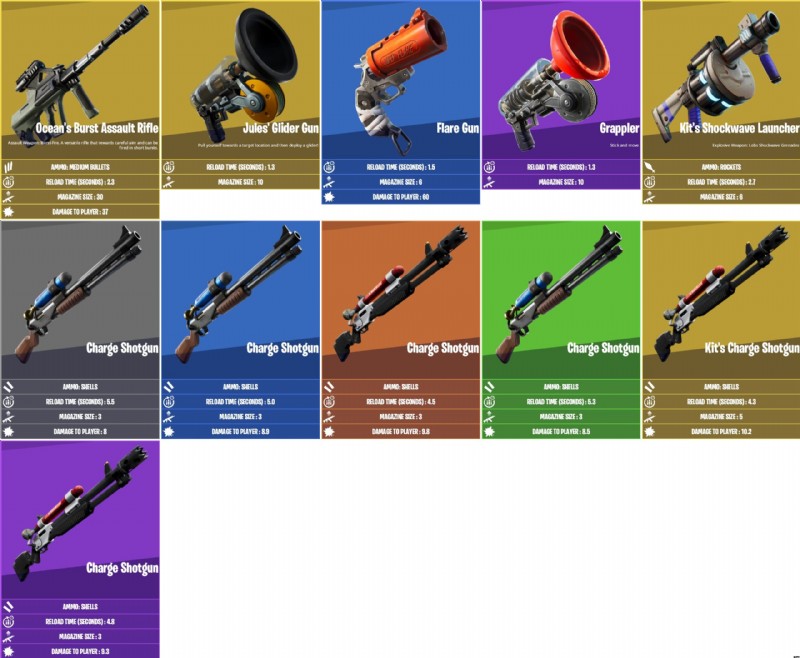 Here's a look at some of the new weapons that were added to the game. Jules also has the mythic Drum Gun which was found on Midas in the past. Each of the bosses has two different mythic items/weapons they can drop.