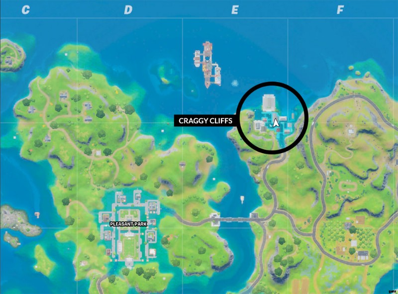 Craggy Cliffs は、水がマップを支配したときにダメージを受けたため、名前の付いた場所ではなくなりました。シーズン 2 と同じ場所にあるため、見つけるにはマップの北部に向かう必要があります。デッドプールのヨットがある場所の南西、プレザント パークの北東にあります。地図の E1/2 と F1/2 にあります!