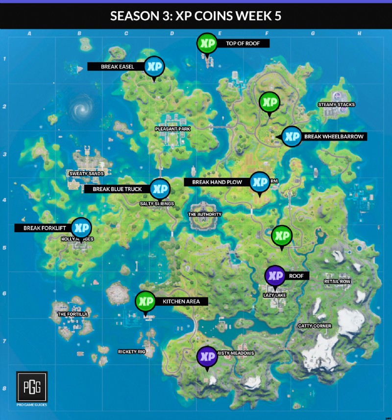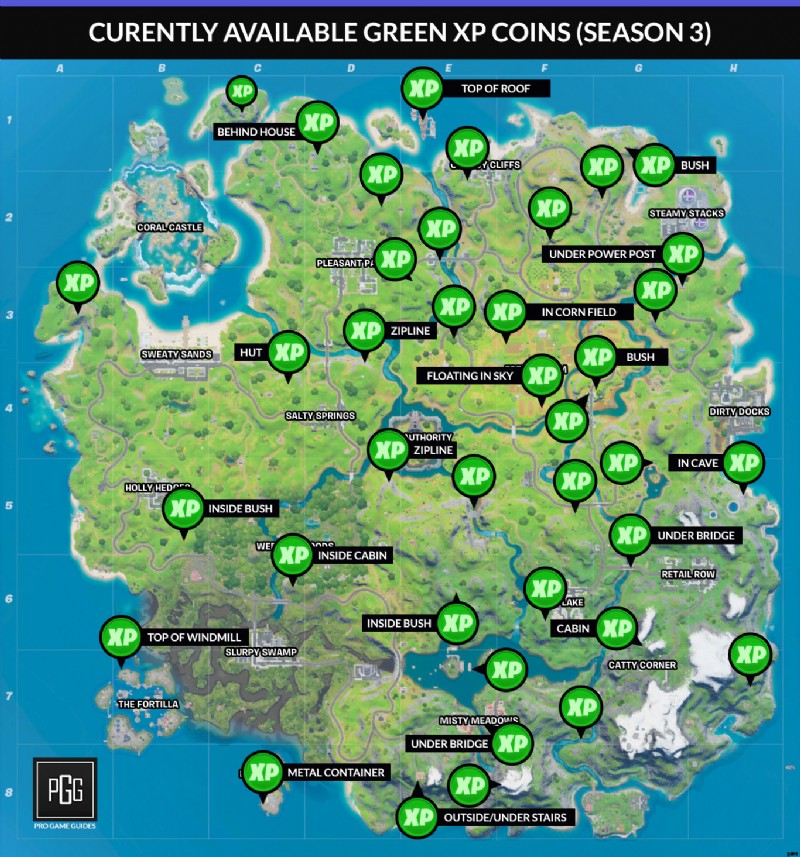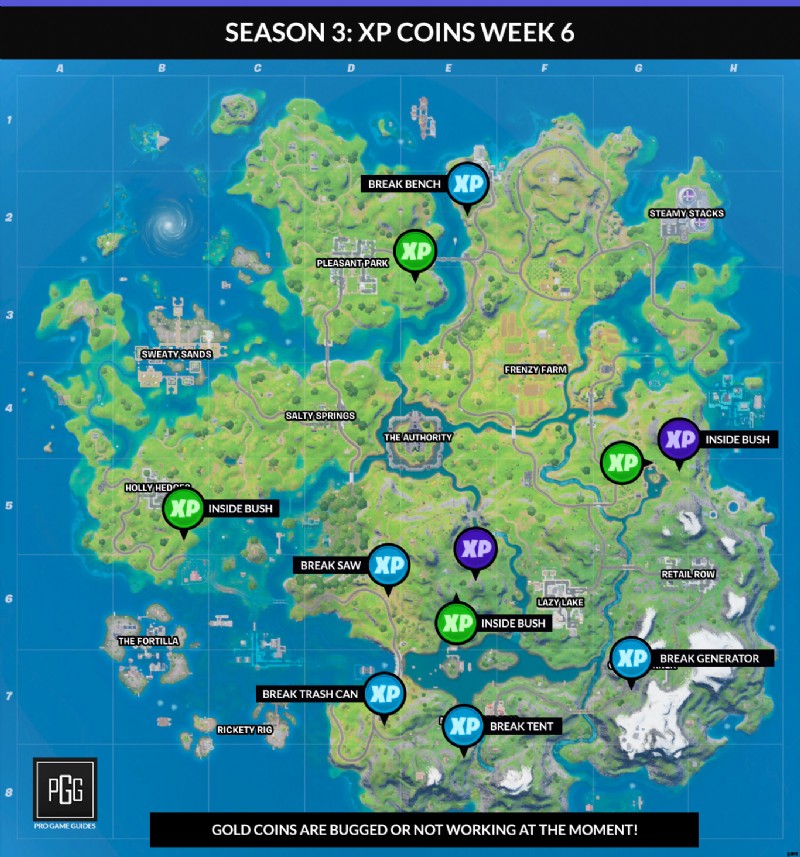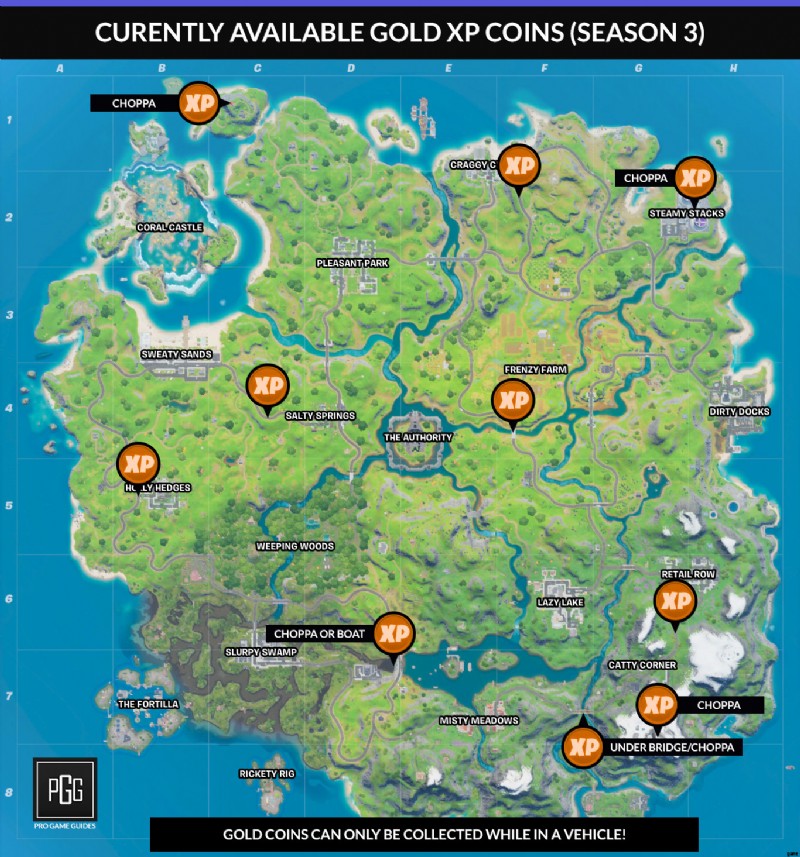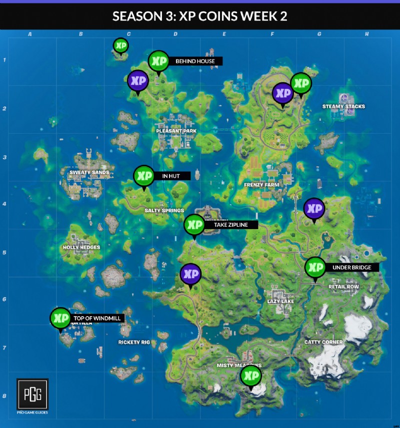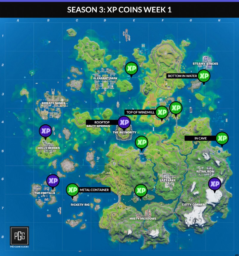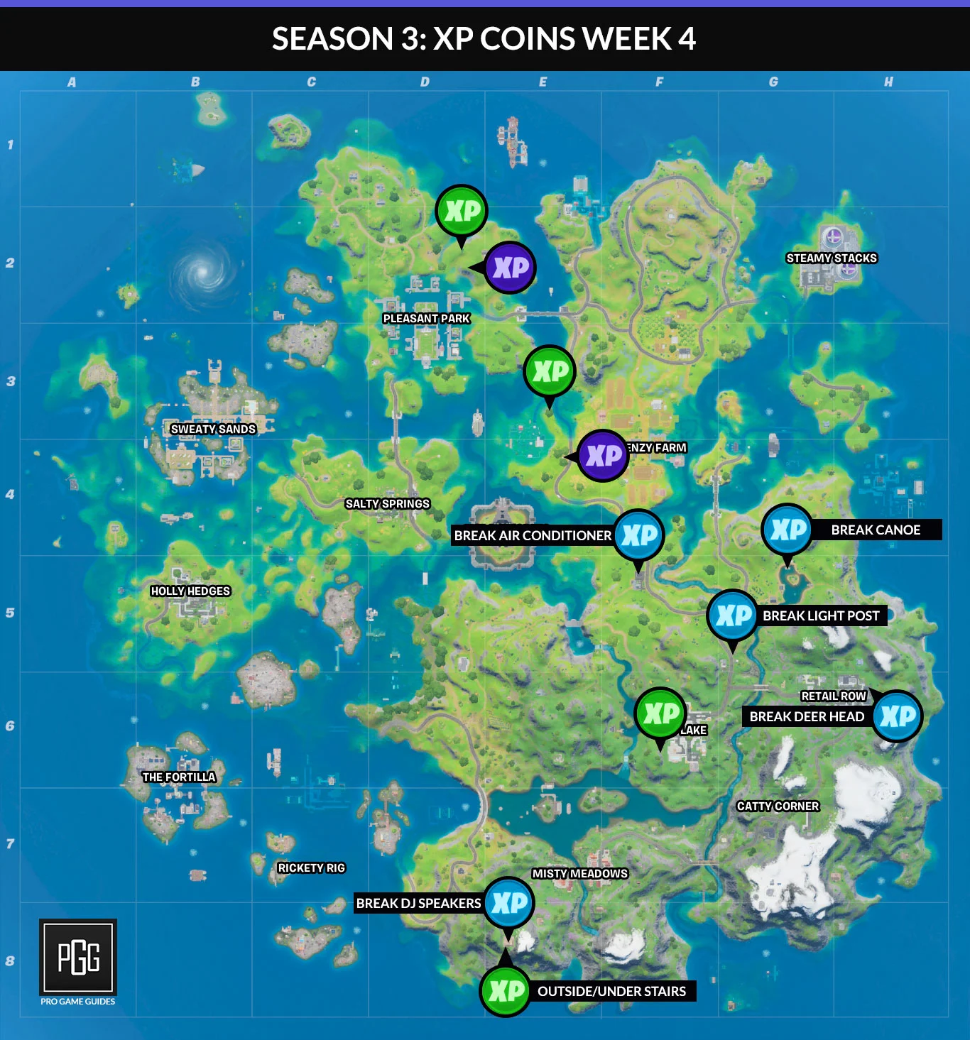Fortnite シーズン 3 XP コインの場所 – 全週のマップ!