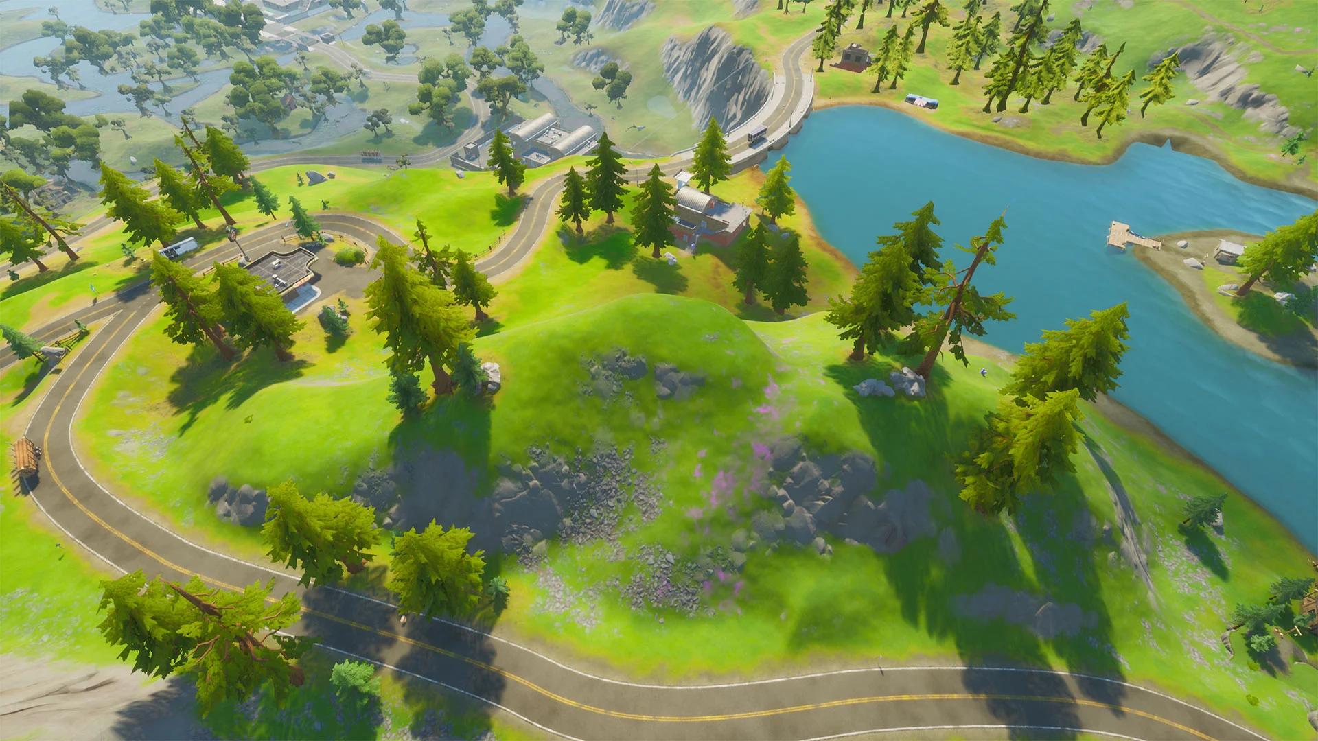 前述したように、場所はミスティ メドウズのすぐ西になります。これはガソリンスタンドの近くで、Hydro 16 ダムのすぐ近くです。これまでのところ、ロケーションは比較的小さく、文字通り別の次元から切り出されてフォートナイト マップに取り込まれたように見えます.