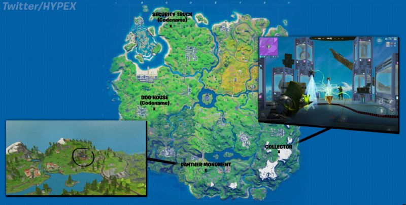 新たにリークされた Fortnite POI:パンサー モニュメント、コレクター、ドッグ ハウス、セキュリティ トラック