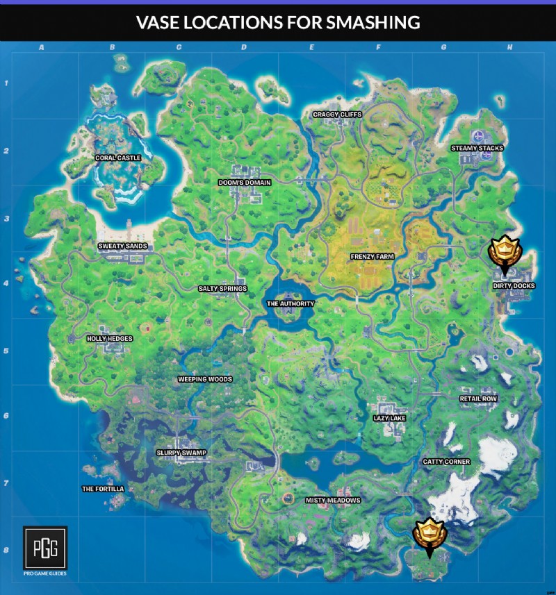 2 つの非常に信頼性の高い花瓶の場所を見つけることができます。ここから出発してそれらを壊し、エモートしてシー ハルクになることができます。 1 つ目は Dirty Docks で、これが最良のオプションです。あなたが壊すことができる花瓶でいっぱいの倉庫全体があります。 1つ潰すだけでいいのですが、変身が終わったら、どんどん潰して楽しむのもいいですね! 2 つ目は、マップの南部にあるキャンプ コッドにあります。標的射撃の切り欠きの真ん中に花瓶がありますが、それを壊そうとする人に出くわすかもしれません.
