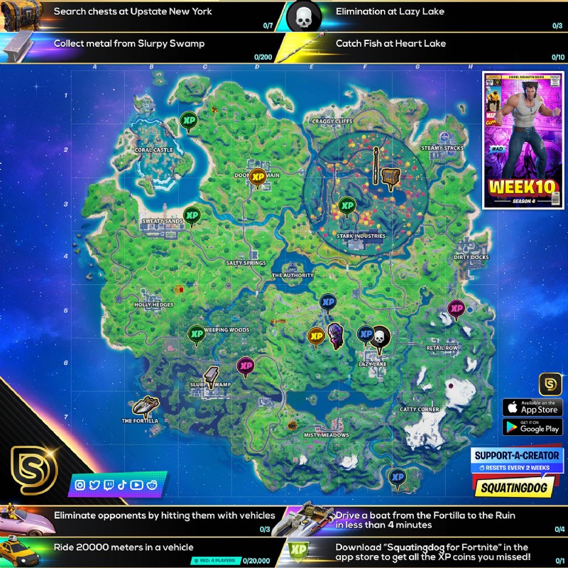 10 週目にすべてのチャレンジを完了するためにどこに行くことができるかを見てみましょう!以下のチート シートは squatingdog の功績によるものです。