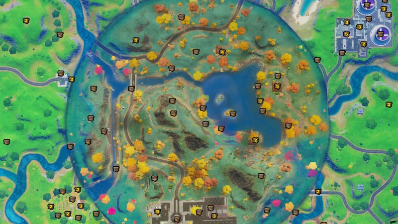 Upstate New York が正確にどこにあるのか疑問に思っているのは、あなただけではありません。スターク インダストリーズが位置する巨大な円形エリアにありますが、ニューヨーク州北部を正確に構成するものを特定するのは少し困難です。スターク インダストリーズの北のどこにでもある可能性が高いので、ランドマークの場所ではないチェストを見つけた場合は、チェストを開くだけでかなり安全です.これは、Fortnite.gg 提供のチェストの大部分のマップです。