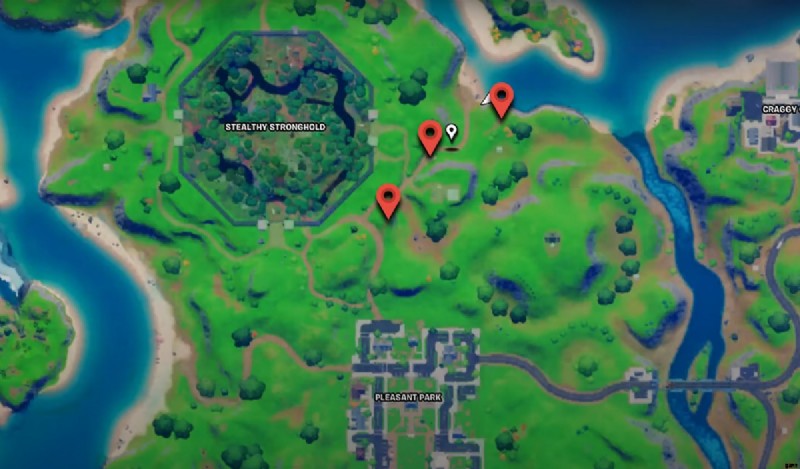 Fortnite の Flamings Rings は、プレザント パークの北にあります。 ステルス要塞の東 .チャレンジはまだ公開されていませんが、これら 2 つの場所の間の未舗装の道路に沿って 3 つのスロープが設置されていることがわかります。