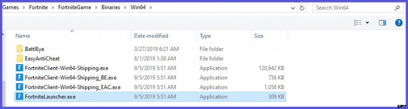 Win64 フォルダーを見つけたら、FortniteLauncher.exe ファイルをクリックします。そこから開くボタンをクリックしてください。これで、Fortnite がメニューにチェックマークが付けられた状態で表示され、[選択したプログラムを追加] ボタンをクリックできます。