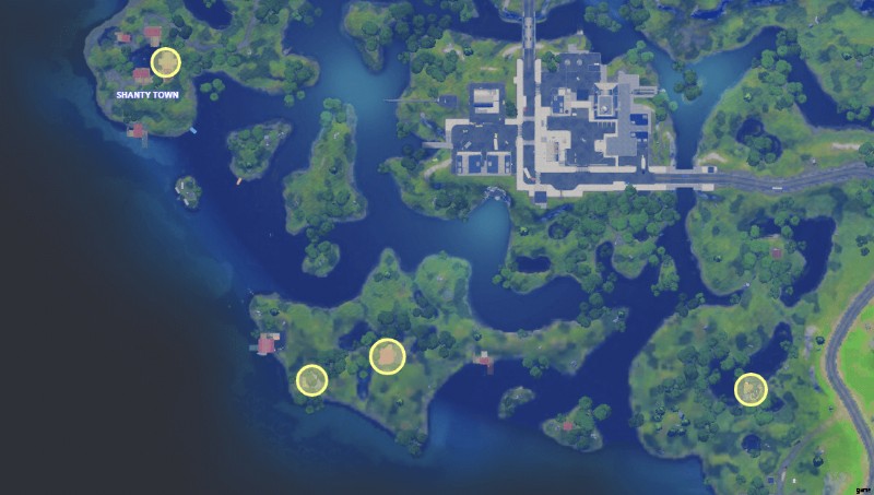 フォートナイトでこのクエストを完了するには、 Slurpy Swamp の 3 つの家を訪問する必要があるため、もちろん、ここに行く必要があります。 POI Slurpy Swamps を無視して、西の湿地に向かいます。このクエストを完了するには、このエリアにある 3 つの異なる家を訪れるだけです。