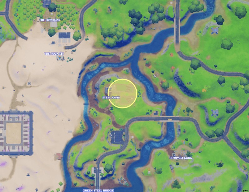Steel Farms は、Compact Cars POI の北西に配置できます。 POI 付近の道路には車が普通に停まっているので、近くに車がある場所に立ち寄るのが良いかもしれません。車なしでスティール ファームズに向かうのは無意味です。グリーン スチール ブリッジでは、数台の車を見つけることができます。
