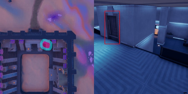 このハブは見つけるのが最も難しく、Stealthy Stronghold の廃墟の中にうまく隠されています。上の画像を見ると、この入り口のおおよその位置が強調表示されていることがわかります。下層階への扉はありません。代わりに、下につながる床の壊れた穴を探します。降りたら、メインエリアへの階段を降ります。階段の向かいには、中央の部屋の下の階にあるドアがあります。サーバーはそこにあります!