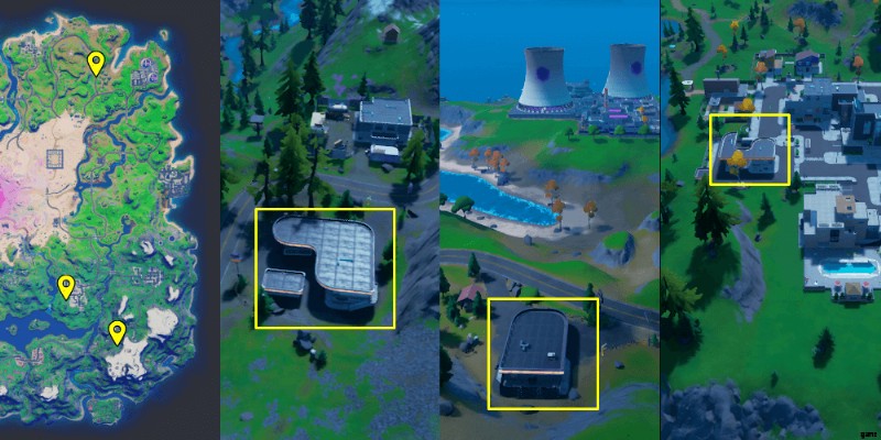 このクエストのプラス面は、乗り物を 1 に降ろすだけでよいことです。 3つすべてではなく、これらのガソリンスタンドの。 フォートナイトのガソリンスタンド 一般的には簡単に見つけることができますが、クエストにリストされている特定のものを見つけるのに助けが必要な人もいます.下の画像を使用してそれらを見つけることができます。